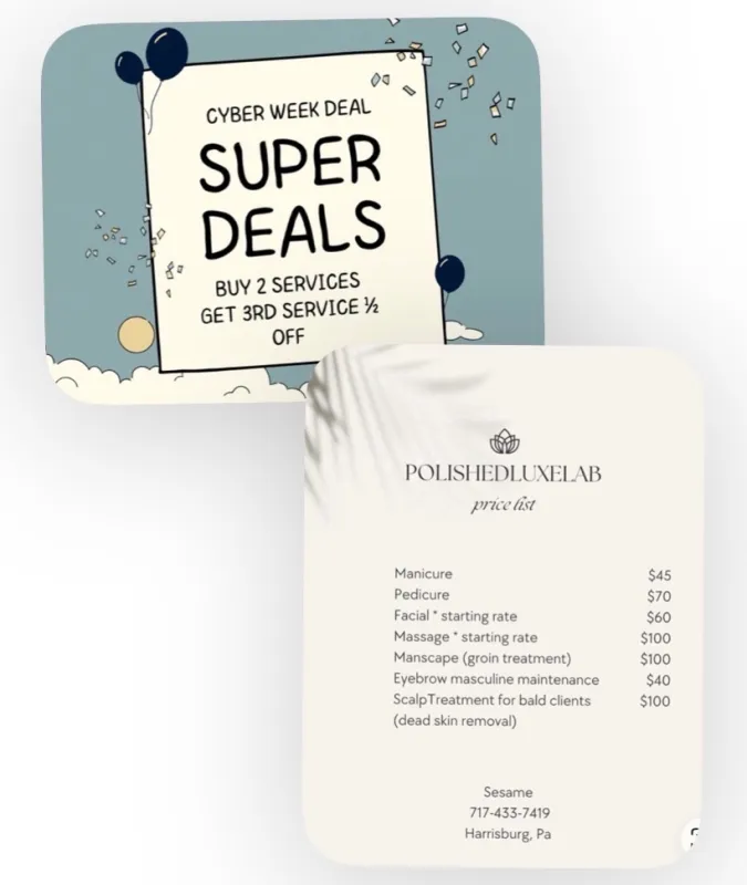 Additional fee for Any services after starts at 10pm I look forward to providing you with an exceptional experience. Instagram: PolishedLuxeLab